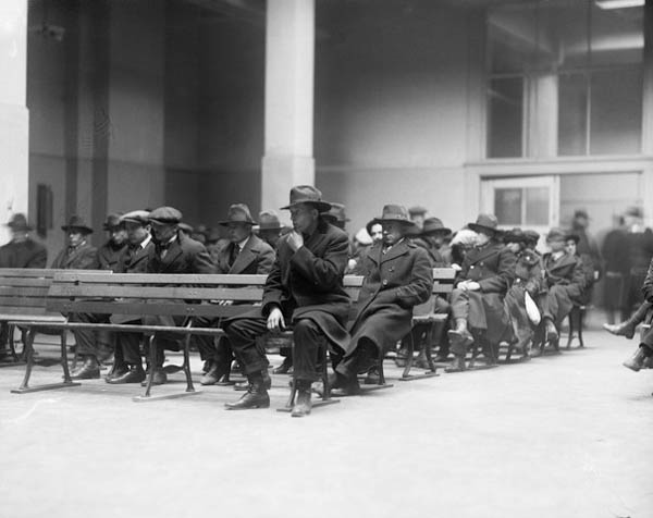 New York, New York, USA — 1/3/1920-New York, NY: Photo shows anarchists, reds, and radicals who were rounded up in NYC in last nights raids, arriving at Ellis Island. These undesirables will remain at Ellis Island untill investigation and deportation proceedings have been completed. Many arrested in Newark and other nearby cities arrived at the Island during the afternoon. — Image by © Bettmann/CORBIS